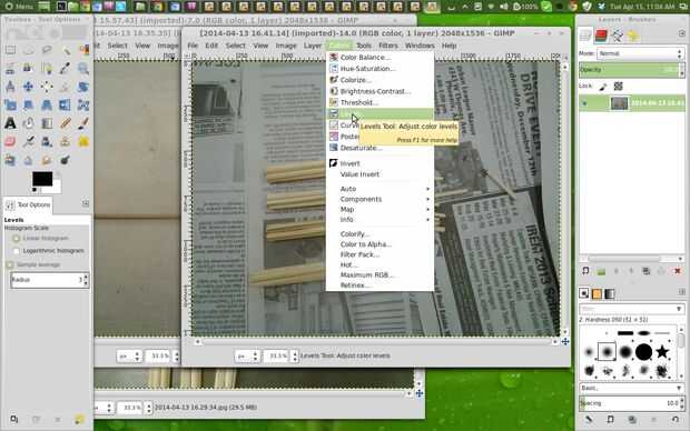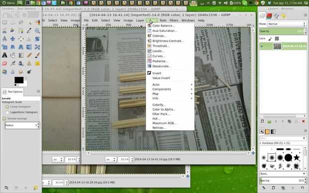 Una vez que tengas tu imagen en GIMP, lo primero que queremos hacer es abrir el cuadro de diálogo "niveles de color". Para ello seleccionamos "Colores" en el menú superior, luego "niveles". ¿Derecho intuitivo? Simple.