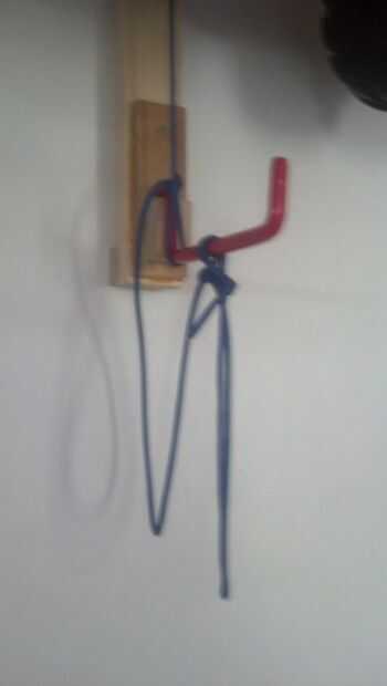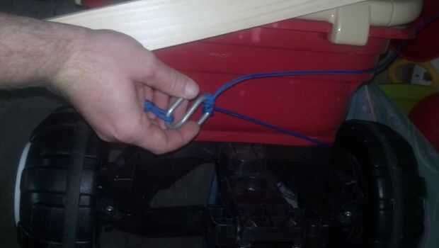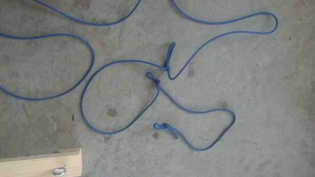 Acabarás teniendo un buen poco de paracord colgando hacia abajo una vez que todo se cuelga, que sería muy tentador para un niño pequeño o un pet y potencialmente desenganche. Así que até unos lazos extras en el cordón para colgar fuera del camino.