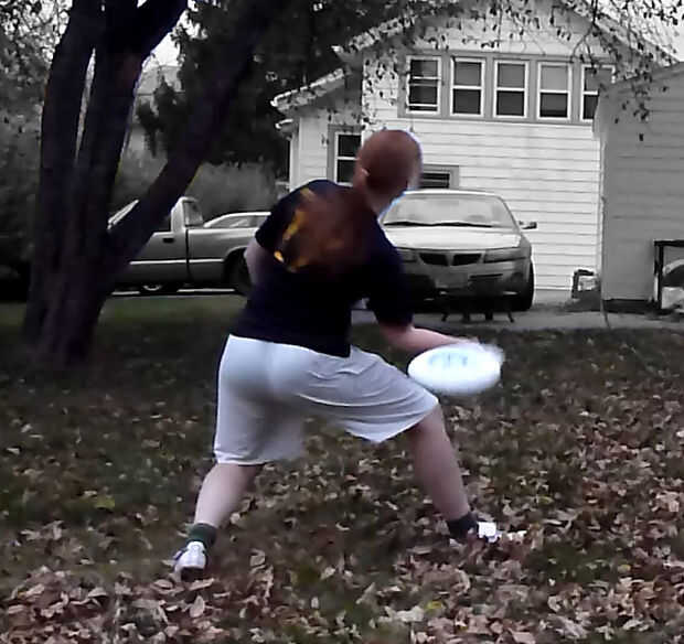 Tire hacia atrás el disco con su brazo y dejó tirar de peso del disco un poco más atrás también.