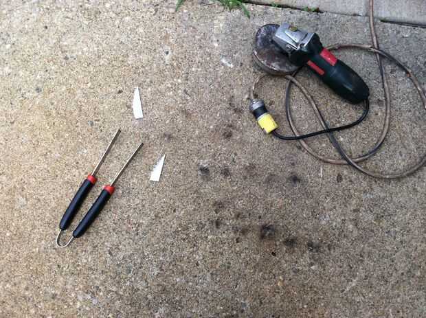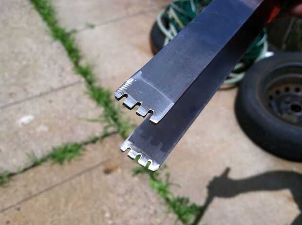 mi primera prueba fue ver si podía aplastar un huevo con estas pinzas, como se puede ver, estos tienen poco poder. Luego cortar unas pocas pulgadas de metal e hizo algunos dientes al final.