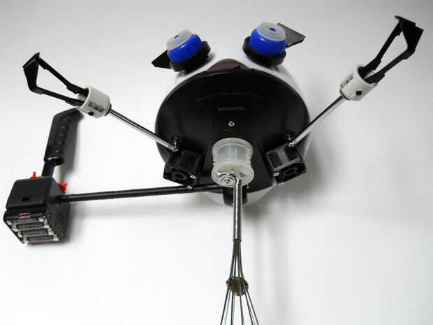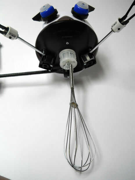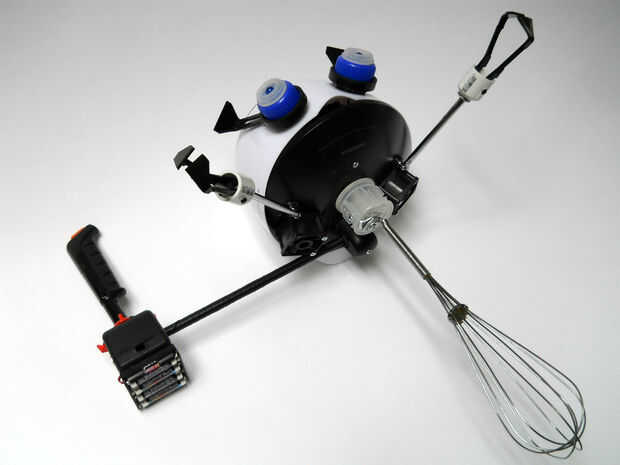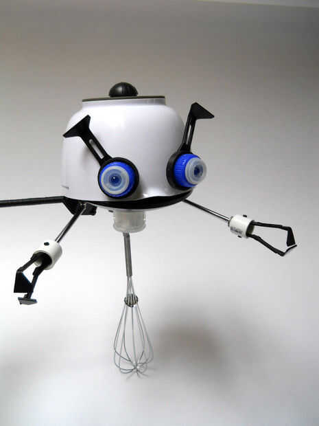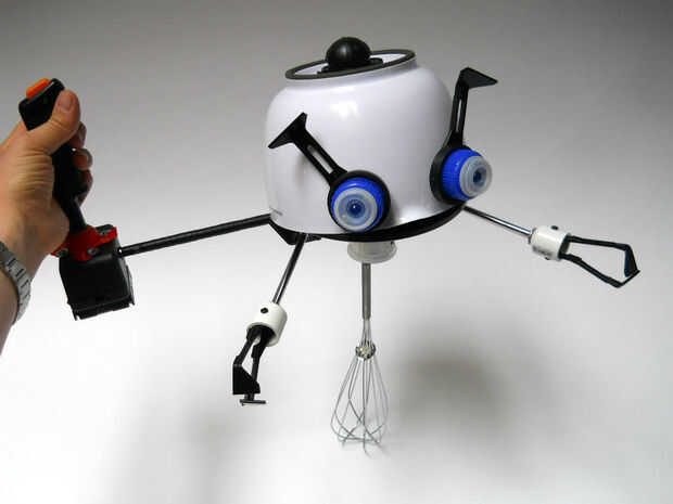 Tired of your old fashioned egg beater? ¿Demasiado simple o demasiado mainstream para usted? No tirarla a la basura. Actualícelo a una batidora de huevos fantástico Sci-Fi, utilizando un recipiente grande, un juguete dañado, algunos desechos electrónicos y una batidora de huevos. Las aplicaciones son ilimitadas: puede mezclar huevos de una manera divertida, usted puede hacer una película de bajo presupuesto sobre un inventor loco (como "Flubber 2" o "Blankman comienza") mostrando este batidor como el robot chef, usted puede... OK, estos son los usos solamente.