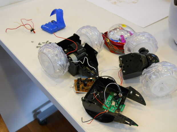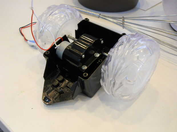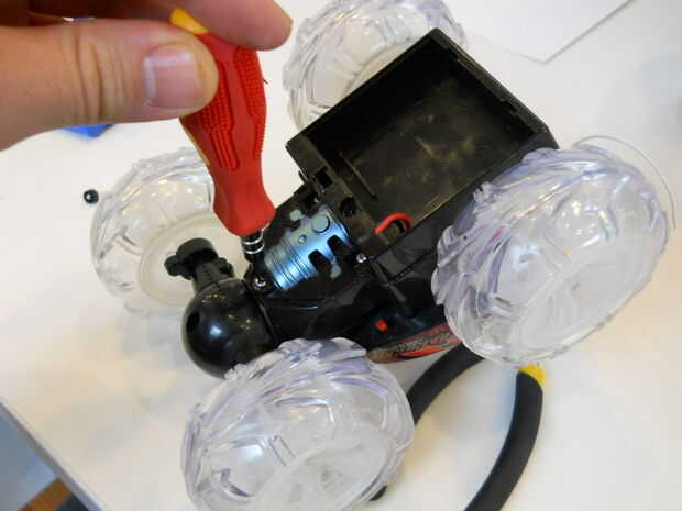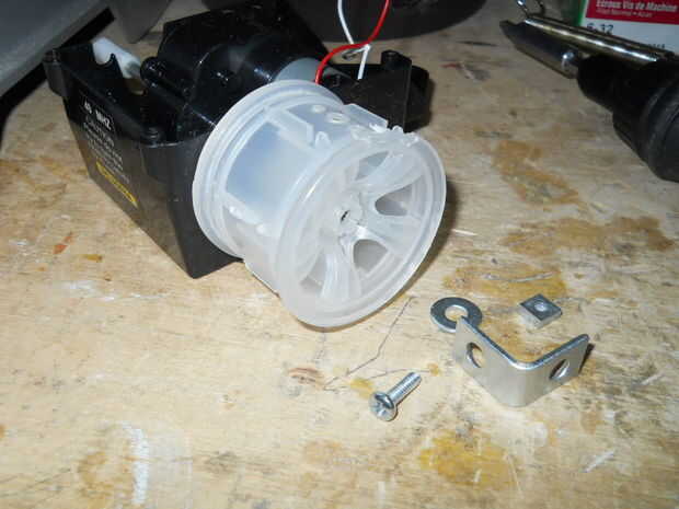 Dismantle the toy car. Se necesita la caja de engranajes posterior y en su caso. Ahora, retire una de las ruedas. Retire la llanta de la rueda a la caja de cambios.