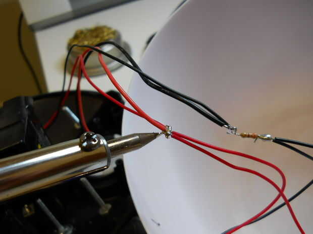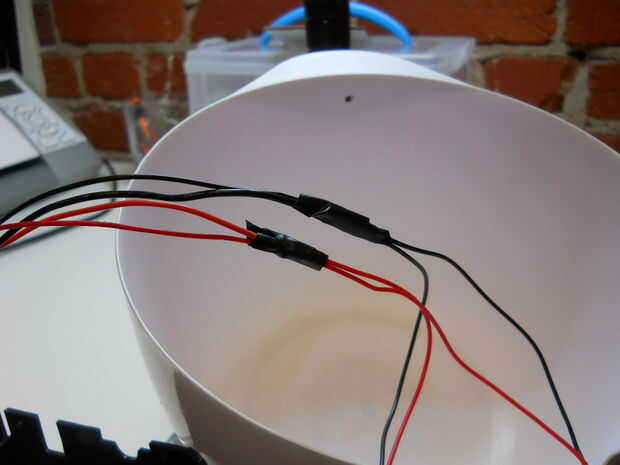 Conecte los cables y coloque el recipiente de plástico para el caso de la antena.