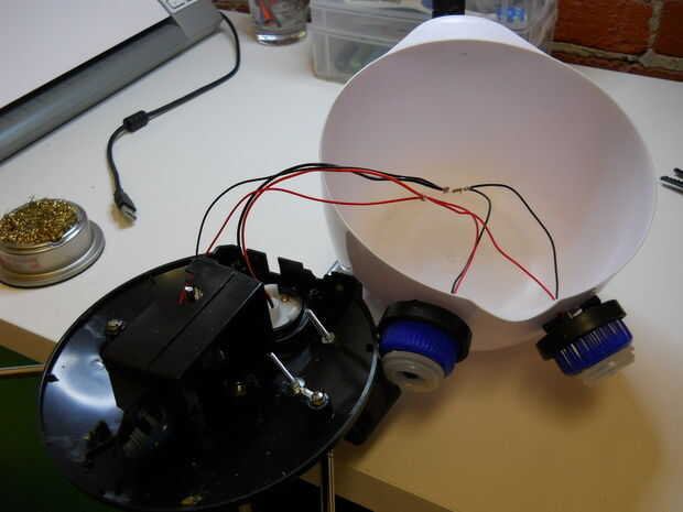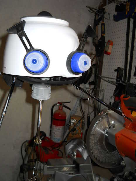 Hacer un "sombrero" con algunas piezas plásticas, como la perilla de la antena y una cubierta de lente de cámara. Poner algunos fans como propulsores.