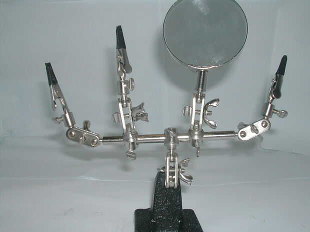 me cansé de mi antiguo 3' rd mano rayar hasta mis circuitos, y que sólo tenía 2 pinzas de cocodrilo. Luego fue a la altura de la "tienda del dólar" y compró 2 3' manos de rd. Este es el final como resultado una muy agradable 3' rd mano!