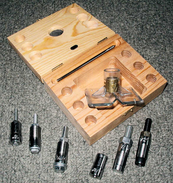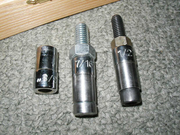7/16" buje: 7/16-14 X 2-1/2" tornillo hexagonal (muele la cabeza hasta poco menos de 5/8") (usted no puede pensar que lo necesario, pero me ha gustado hacer cosas profesionales buscando) arandelas de la tuerca de 7/16-14 (si procede)