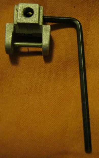 Para la referencia, este es el adaptador original. Para usar hojas, la hoja insertada entre dos adaptadores y apretar con una llave hexagonal. Cuando no hay ninguna tensión en la hoja, no se queda en el cuerpo de la sierra y se cae, ya que la tensión tiene el adaptador para la Sierra de calar.