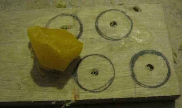 En este paso, la madera de la cera. Utiliza una vela y la aplicó rápidamente para crear fricción. Nivel utilizando una hoja de afeitar; Esto se completa y en la superficie. Lo más importante, evitará que el epoxi utilizado para hacer las perillas que se pegue.