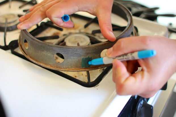Paso 2: Marcar todos los puntos donde el anillo del wok cruza la rejilla del quemador acero