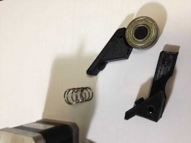 He buscado un hotel en los foros y encontrar que personas resolver esta cuestión por resorte carga el filamento. Pero la mayoría de los diseños donde usar rodamientos pequeños y tuve manojo de rodamiento más grande poner alrededor.