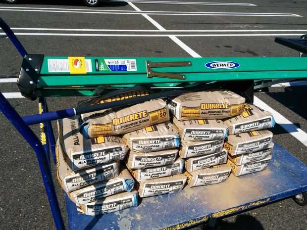 - ARENA (arena para todo uso funcionará mejor que arena fina patio. el mayor tamaño de piedra drenará mejor general). en promedio, una bolsa de 50lb de arena cubre aproximadamente 6 pies cuadrados en 1" de profundidad. Tenía aproximadamente 100 pies cuadrados y utilicé un poco más de 14 sacos para obtener unos 3/4" de profundidad.
