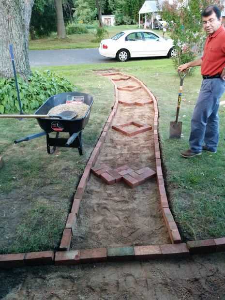 Para el patrón del ladrillo que puede ser como creativo, que te gusta. No puede uno quiere a todos e introduce el camino con grava. Jugó con unos diseños diferentes y colocado en un diamante vacía y alterna la raspa de arenque. En total se utilizaron unos 150 ladrillos.
