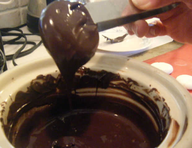 Paso 4: Hamburguesas de inmersión en Chocolate oscuro y vuelta a la hoja de galleta cubierto.