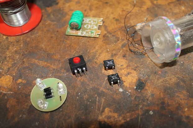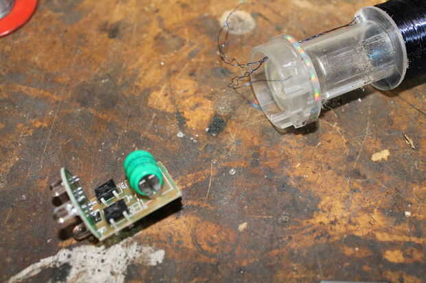Inicio quitando las bobinas de la placa de circuito principal, tenga cuidado de no dañar la tesis como son difíciles de fijar. después de esa, las Naciones Unidas-soldadura todos los componentes de la Junta Directiva. Debe haber dos puentes rectificadores que convierten la corriente alterna de las bobinas a DC para cargar las baterías, un interruptor, tres diodos (éstos fueron utilizados por lo que podría haber un LED o los tres), tres LEDs y la batería. Ahora puede deshacerse de la batería y el circuito, como no necesitamos más.