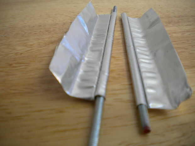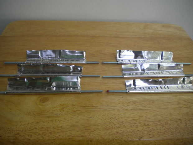 He insertado un segmento de varilla roscada de 8-32, a través del orificio de cada electrodo (ajuste era punto!). Los segmentos fueron 3,0 cms más largos que la cubierta de la turbina.