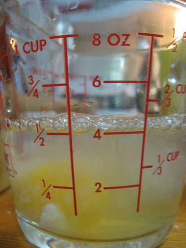 Tomar un taza de líquido. Añadir 1 huevo (mejor si a temperatura ambiente). Añadir agua fría a huevo hasta que mezcla medidas 1/2 taza. Usar agua fría ayuda a enlazar la masa y mantener masa sólida cuando maneje.