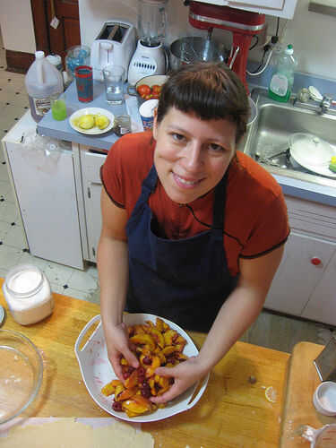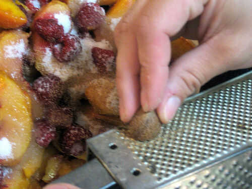 Añadir 1/2 taza de azúcar y 1/8 cucharadita de nuez moscada. Si tienes nueces nuez moscadas frescas, rejilla de 1/8 cucharadita añadir 2-4 Tbl de harina. Es importante añadir harina Si el relleno está buscando super jugoso. Ayudará a espesar el relleno para que no terminen con un pastel jugoso super mocosa. Todavía podrán degustar buen pase lo que pase, pero puede no lucir tan bien o tan fácil de comer.