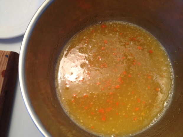 Calor durante cinco minutos hasta que haya calentado a través. No dejes que hierva o más calor.