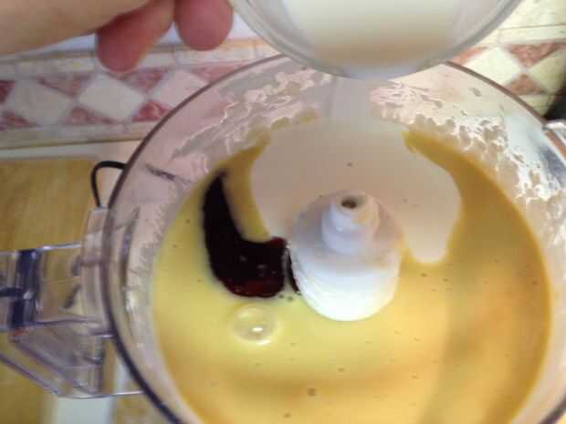 Mezcla de media crema y la vainilla.