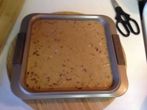 Luego Vierta la mezcla de pastel en el 9 - pulgadas cuadrados preparado.