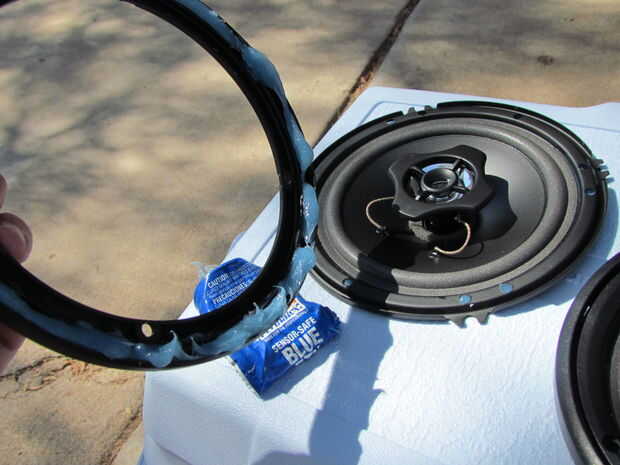 Usé el azul sellador RTV en los altavoces porque la superficie de la tapa no era suave y estaba tratando de conseguir un poco de un sello con el altavoz. También la usé en el anillo de montaje para mayor seguridad!