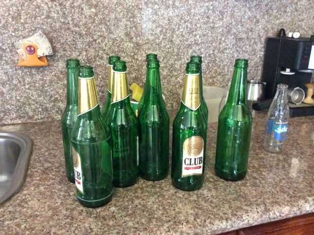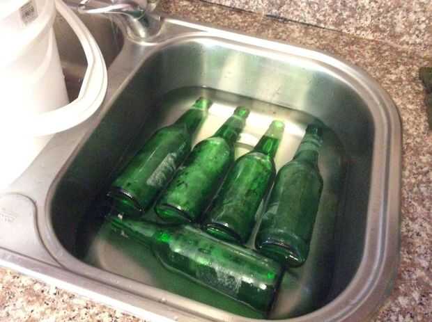 Primero limpia todas las botellas de cerveza que has estado ahorrando. Remoje en agua tibia para bajar las etiquetas. Límpielos con un brebaje de inicio solución de limpieza.