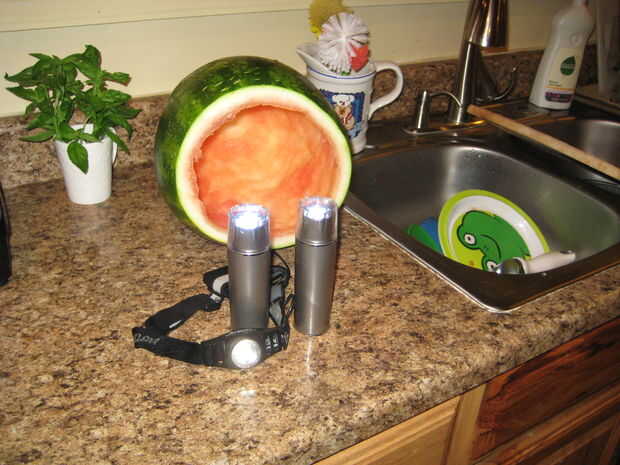 Luces de LED no requieren oxígeno y poner sólo calor mínimo. Por lo que no necesita ventilar esta luz. Me gustó mucho el LED porque trajo hacia fuera el color verde natural en la corteza. No estaba feliz con mi luz flash LED que utiliza debido a los focos. Pero se podría trabajar en su diseño. Si usted tenía una base de la lámpara y una lámpara LED probablemente trabajaría mejor. Pero sobre todo que me ha gustado un montón y linterna de melón duraría más.