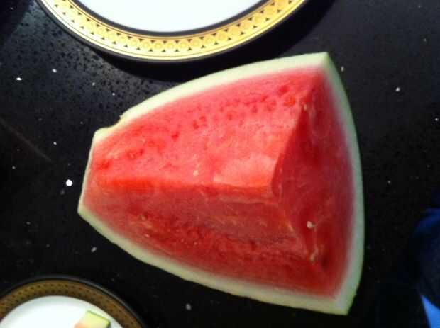 Corte la sandía en rodajas grandes aproximadamente como el de la foto de arriba.