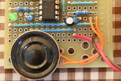 Corte 2 piezas de alambre sobre 2inches largo, tira de ambos extremos y soldar un extremo de cada cable a cada terminal del altavoz. Soldar los dos hilos P19 y Q19 en la parte superior de la PCB.