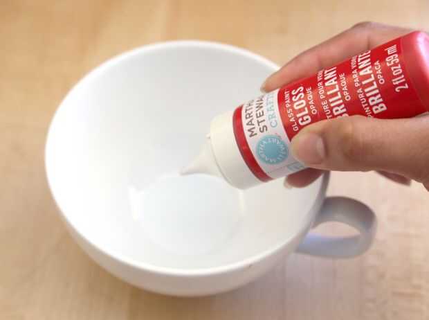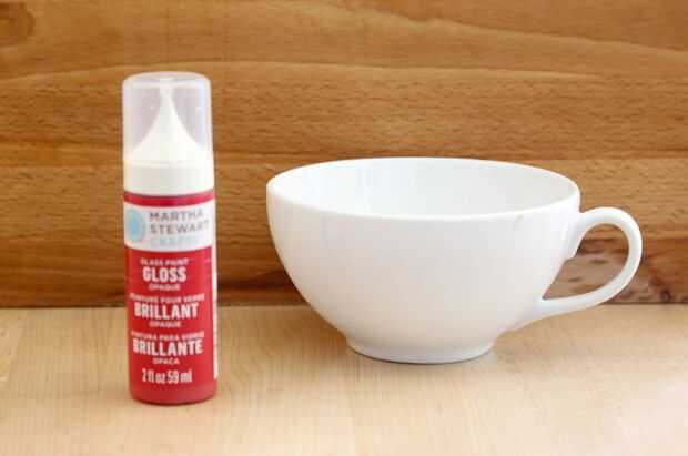 Para este método, necesita pintura de vidrio y una taza. Usé pintura de vidrio Martha Stewart opaquer en Habanero rojo.