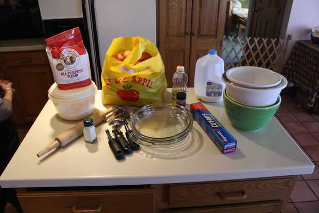 Use manzanas tartas con carne firme. MacIntosh y Cortlands funcionan mejor; También puede utilizar Granny Smith. No use nada con "Delicious" en su nombre, son inútiles para pasteles.
