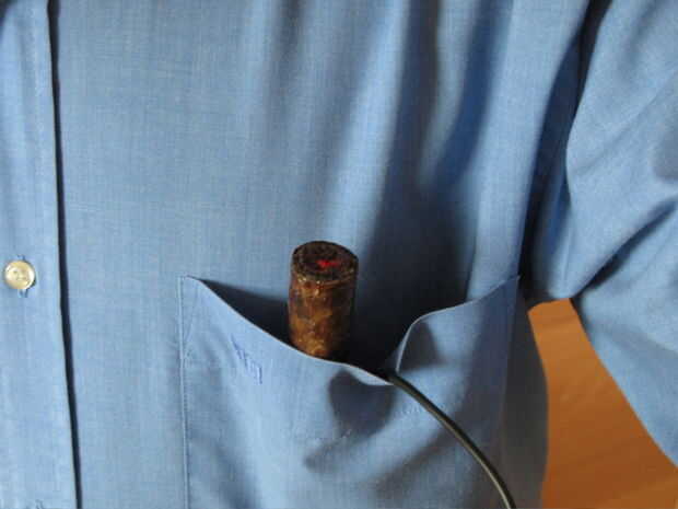 Jazz! qué mejor, con un cigarro? En el video de arriba, una pista de MP3 almacenada en el cigarro es interpretada por la computadora, tan pronto como el cable USB está conectado. En el mismo tiempo, se inicia transferencia de datos, para mostrar la variable de LED. Estos efectos se obtienen por dos comandos de shell Linux.