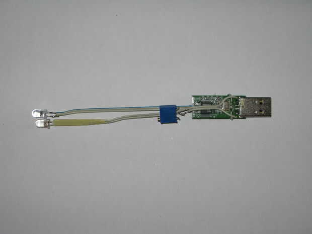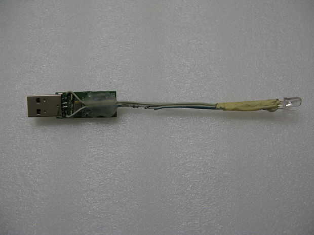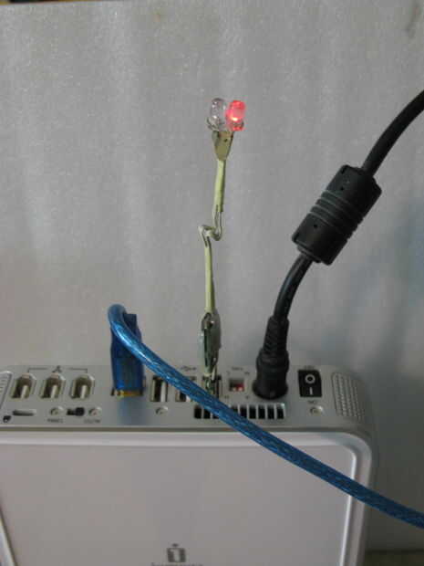 Conecte el LED #2 rojo a los conectores USB externos. No olvidar la resistencia de 10K en serie.