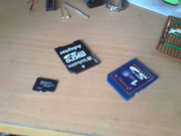 1. 1 x lector de tarjetas de memoria inútil o zócalo de la tarjeta SD. 2. 1 x tarjeta SD (o microSD card con adaptador). 3. 3 x 4 registro de .7kohms. 4. 3 x registro de 10kohms. 5. algunos carriles de conectores macho.