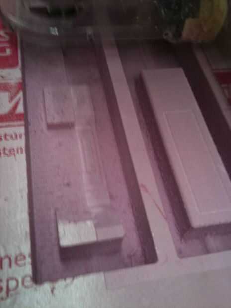 MATERIAL y puesta a cero: aislamiento rígido de 2 pulgadas proporciona un material duro y maleable con una profundidad decente que más camas de fresado para. En este caso la espuma 2" fue colocada en un Techno 3 eje 4'x 8' molino cama. El fresado del primer positivo tuvo 12 minutos y la resolución fue como deseado de no se superpone o se omite la geometría. Todos los detalles fueron resueltos.