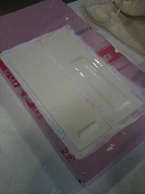 Mezcla de yeso de París y eche el agua para llenar el molde restante para crear un forro rígido para sostener el silicio en su lugar.