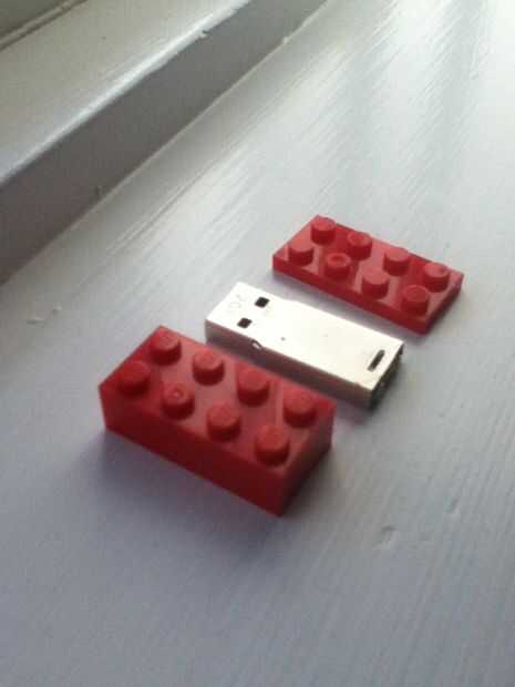este es mi usb de lego¿Cómo hacer? que s lee esto:tengo un usb de tarjeta de crédito un muy pequeño y largo palillo del usb (del tamaño de una tarjeta de crédito)Tomé un cuchillo y había tallado de todas las cosas dentro del ladrillo hacia fuera. en