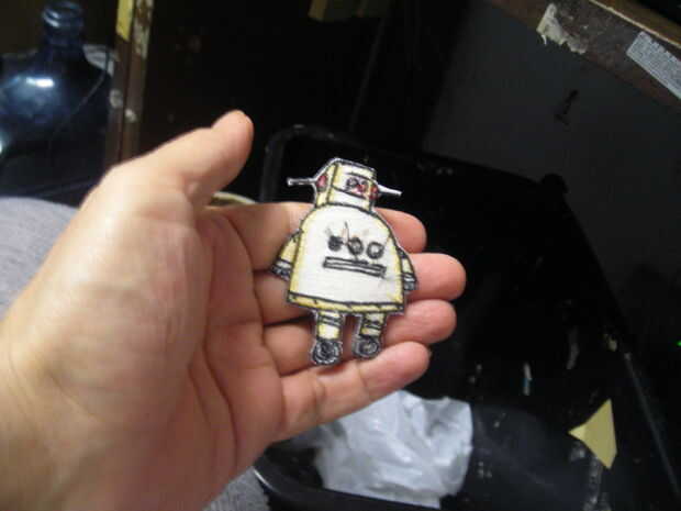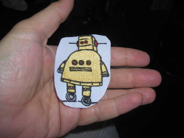 Tomé el parche, y recortar la figura del robot, asegurándose de que la unidad encajaría en detrás del robot.
