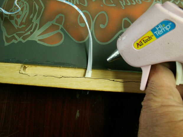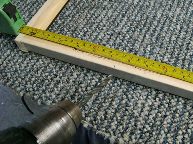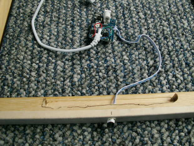 Después de la encaminamiento de la muesca, el centro del marco y taladrar 1/4" arriba de la parte inferior del marco de la muesca. Este agujero es para el sensor de control remoto infrarrojo receptor.