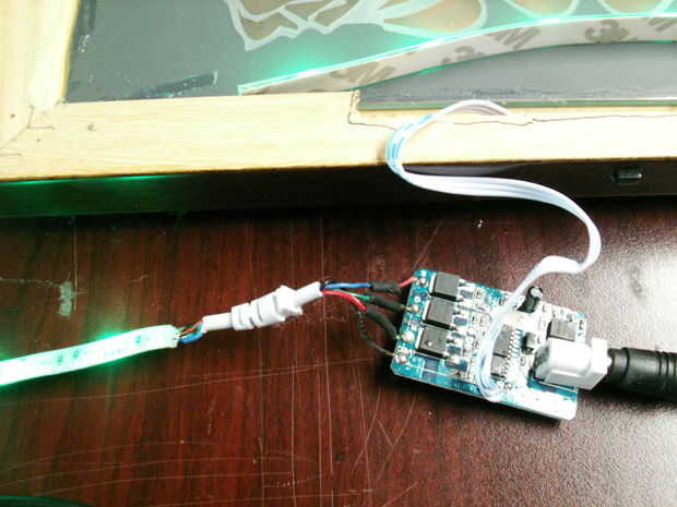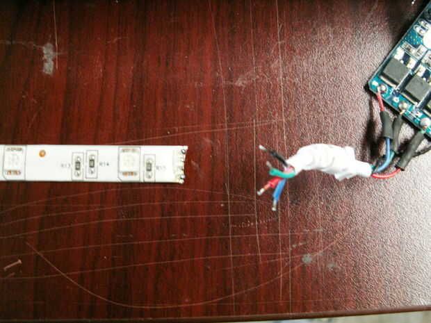En este punto siempre Conecte la fuente de alimentación para asegurarse de que todo está en buen estado de funcionamiento. Un ciclo por cada color individual en el control remoto. Obviamente el botón rojo debe girar los LEDs rojo, verde con verde y azul con azul. Si cualquier 2 colores no coinciden, es decir, rojo se convierte en verde y verde se convierte en rojo nuevo debe soldar los cables para que coincida con. Lamentablemente esto sucede muy a menudo. Pero sólo toma un minuto para fijar.