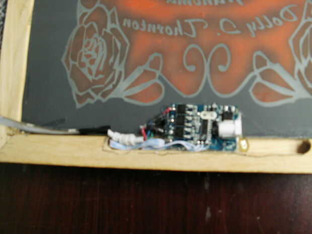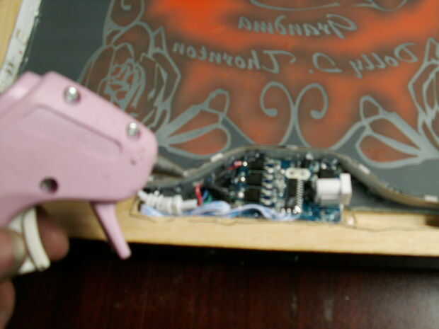 Coloque la placa de circuito en el centro de la muesca doblando cuidadosamente los cables del ojo receptor y pegamento caliente todo en su lugar.