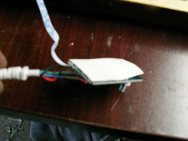 Derrite una pequeña cantidad de estaño a la punta del soldador y sostenga a uno del cobre pad soldado de la tira LED. Después de unos 3 segundos la soldadura se adhiere a la plataforma, deje que se enfríe unos segundos y repita hasta que todos los 4 botones tienen una bola de la soldadura que se le atribuye. Una almohadilla será marcada 12v. Esto es donde se soldar el cable negro. También puede se encuentra en la placa de circuito como vcc. Soldar los cables negro, rojos, verdes y luego azules a la banda.