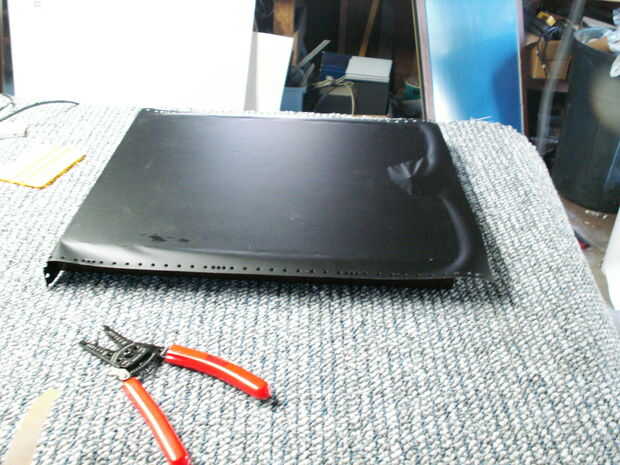 El conector hembra de alimentación cables pigtail a través de este orificio y conecte los cables al adaptador de enchufe + al blanco rayado. Un poco de pegamento caliente se aplica a los cables en la regleta de terminales.