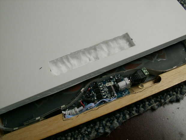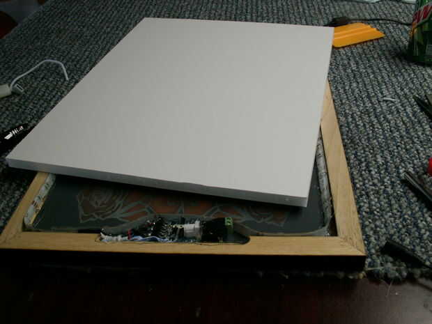 Mida y marque el área de la base donde la placa de circuito y cableado permitir que el respaldo a sentarse al ras en el marco. Corte y retire la capa de papel y alrededor de la mitad de la espuma. Se trata de una custom fit así continuar quitar espuma hasta que el tablero de la espuma se asiente al ras en el marco.