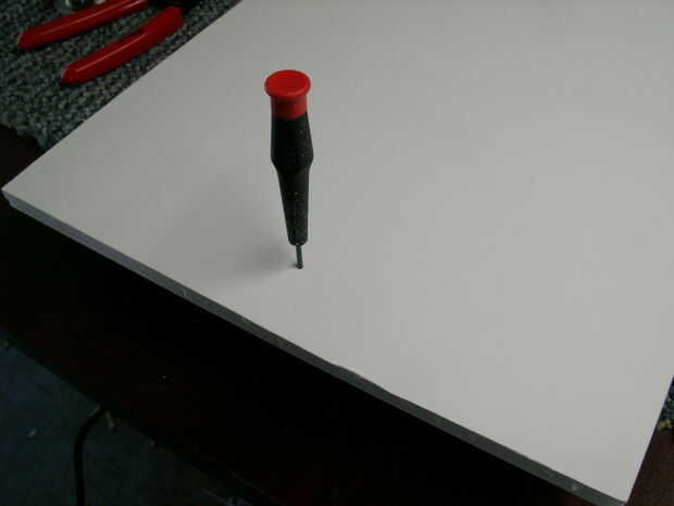 A continuación, haga un orificio en el tablero de la espuma en la muesca rectangular que acaba de realizar para cubrir la placa de circuito. Utilizar un destornillador pequeño o una broca de 1/8 pulgadas.