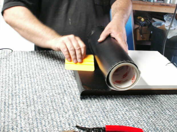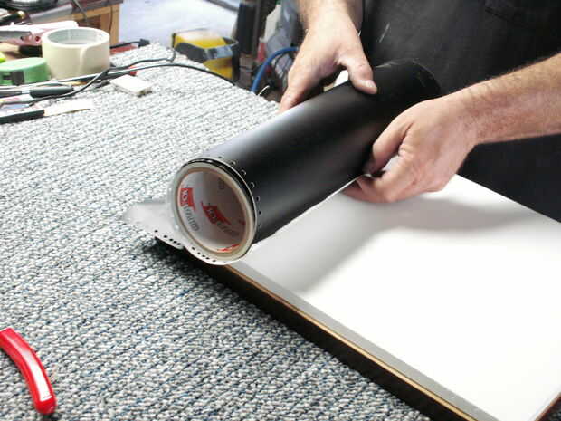 Aplicación de vinilo para el tablero de la espuma trasera es algo opcional, pero añaden un toque de profesionalidad.