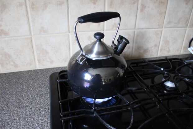 Calentar agua en la estufa para descomponer el aceite dentro del frasco