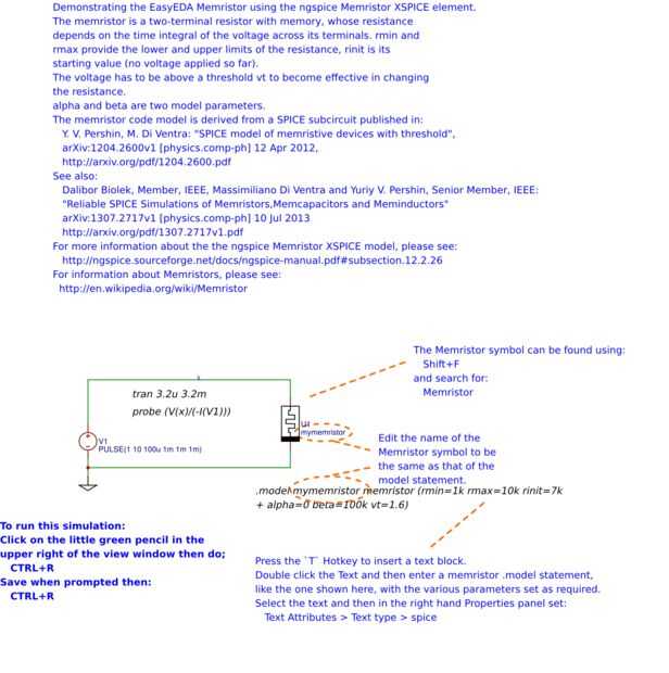 http://NGSpice.sourceforge.net/docs/ngspice-manual... Para obtener información acerca de memristores, consulte: http://ngspice.sourceforge.net/docs/ngspice-manual...