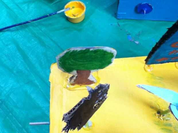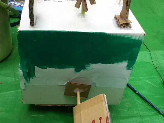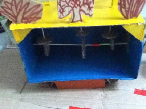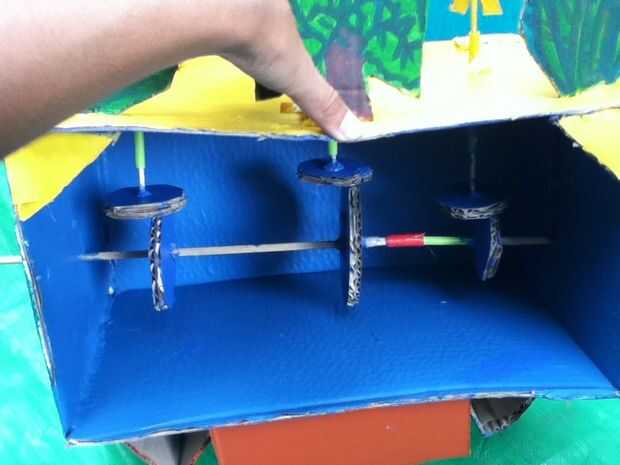Pintamos el interior y exterior uso la casa paint.we el azul marrón negro blanco verde amarillo. Pintamos el interior azul y lado pintamos el verde la palanca pintamos el azul el árbol pintamos el verde y el marrón el caballo que la pintura es azul blanco marrón negro y el propulsor.