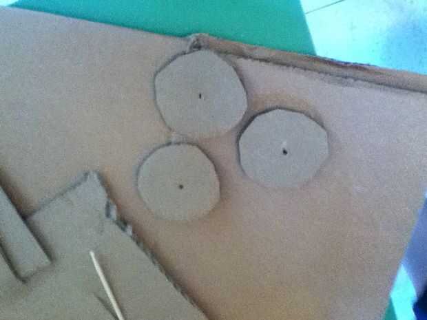 Tomamos el círculo y el palillo. Tomar el palillo en el centro del círculo y empujar para que el orificio.